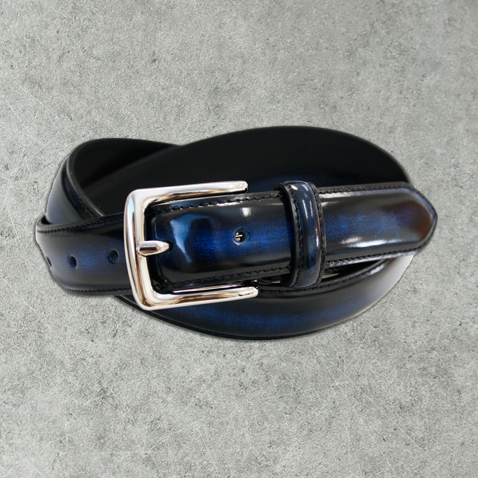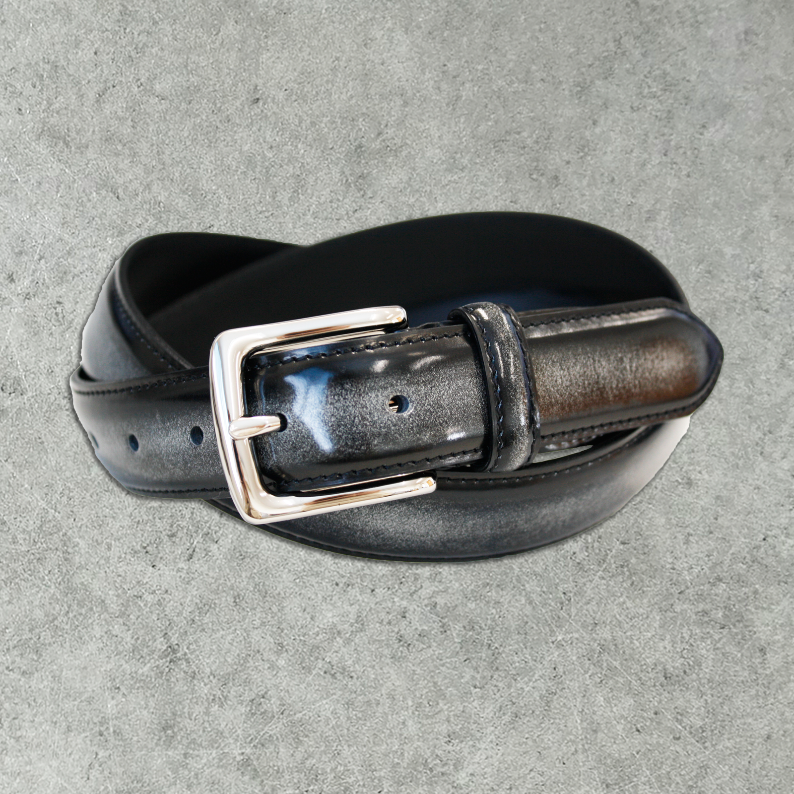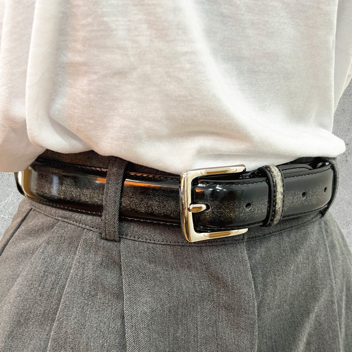 ドレススタイルにはもちろんシンプルな装いのアクセントとしても活躍する大人の遊び心をくすぐるベルトです。しっかりとした厚みと張りを持ちながらも使い込むほどにしなやかさが増し、艶の深みも増していきます。バックルはシンプルで主張を抑えたデザインに、レザーの存在感を引き立てています。