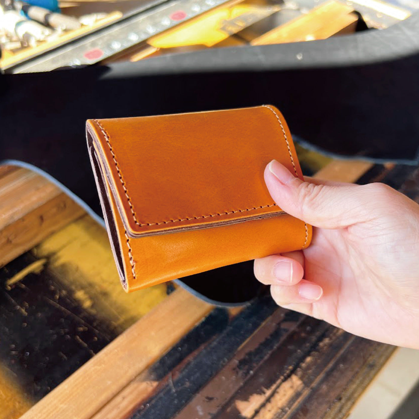 栃木レザー株式会社の「フルベジタブルタンニングレザー」を使用し、日本の熟練した職人が一つ一つ丁寧に作っており製造には数か月かかり、約20もの工程を経て完成します。ベジタブルタンニンレザーとは、植物から抽出した渋(タンニン)を使って、革をなめす製法で作られる革のことです。長い時間と手間をかけて作られることから、深い色合いや独特の質感が特徴で使い込むほどに色や艶が増し、さらに深みのあるデザインへと変化します。経年変化を楽しめる素材として人気があり、自分で育てて行く楽しみも持ち合わせます。
