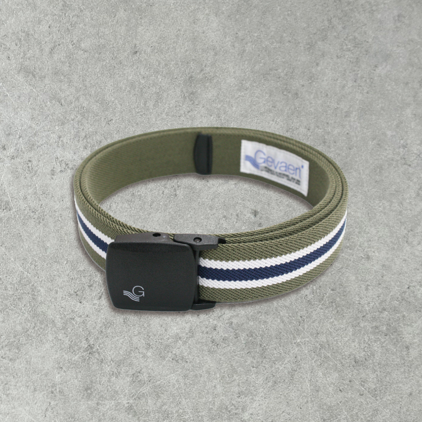 GEVAERT(ゲバルト) プラバックルセンターラインベルト ベルギー生地 日本製 ゴム生地 ベルト長さ:約110cm ベルト幅:3.5cm ストライプ柄 カジュアル メンズ レディース アウトドア ファッション小物