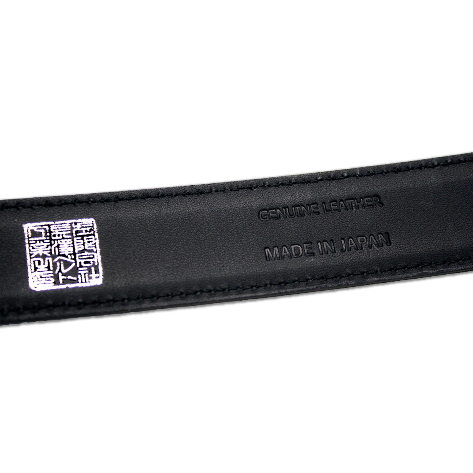 裏には長沢ベルト工業の"GENUINE LEATHER“と"MADE IN JAPAN”(日本製の革)素押しが入っています。