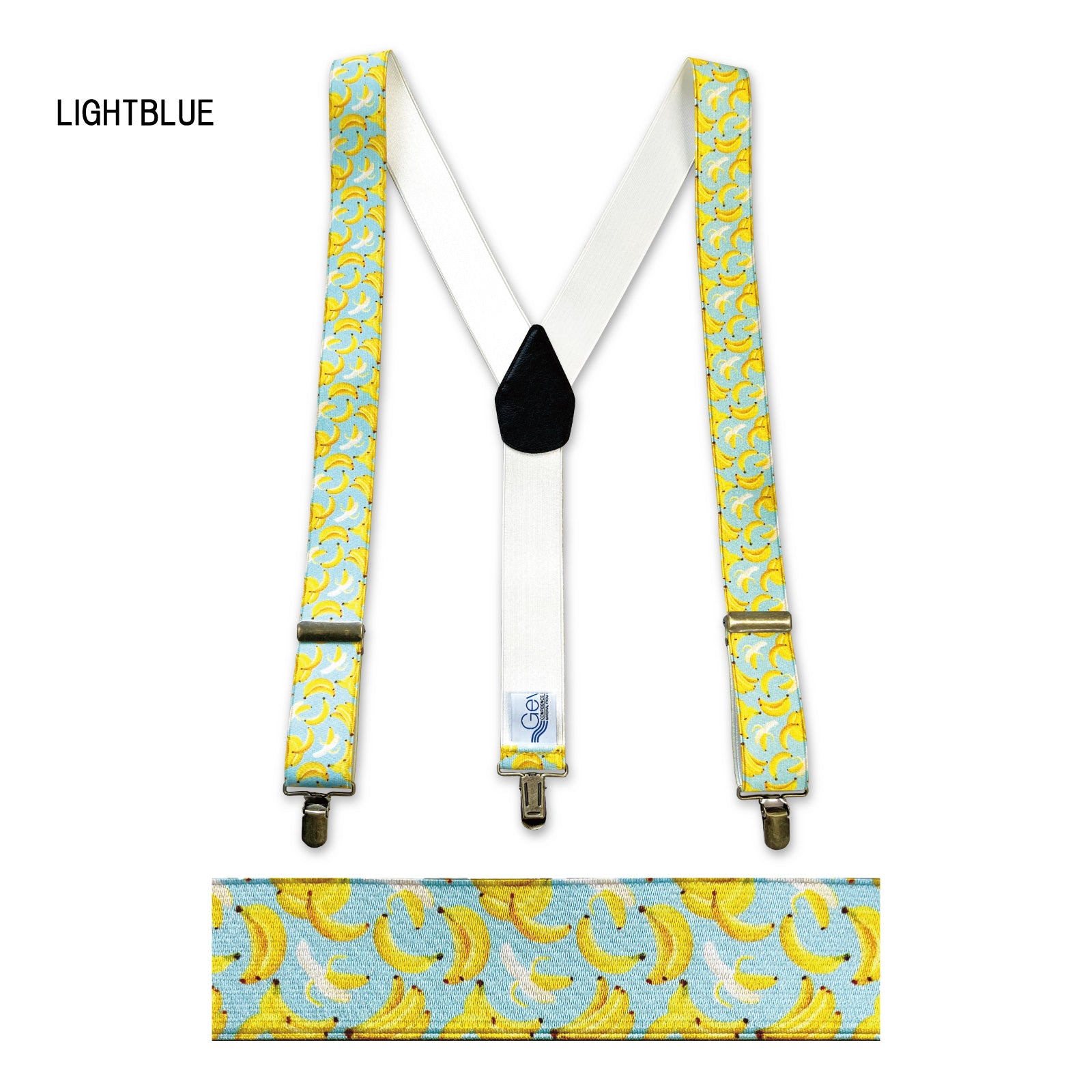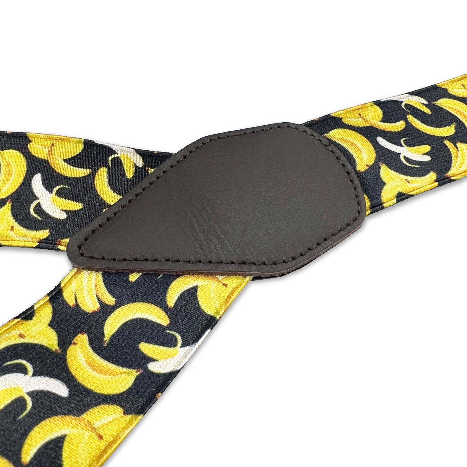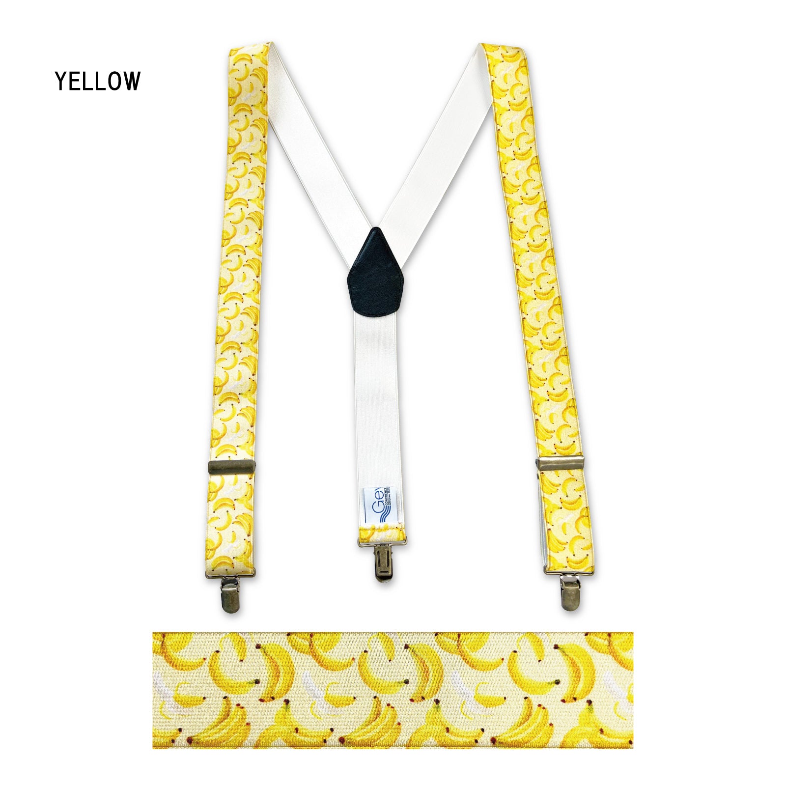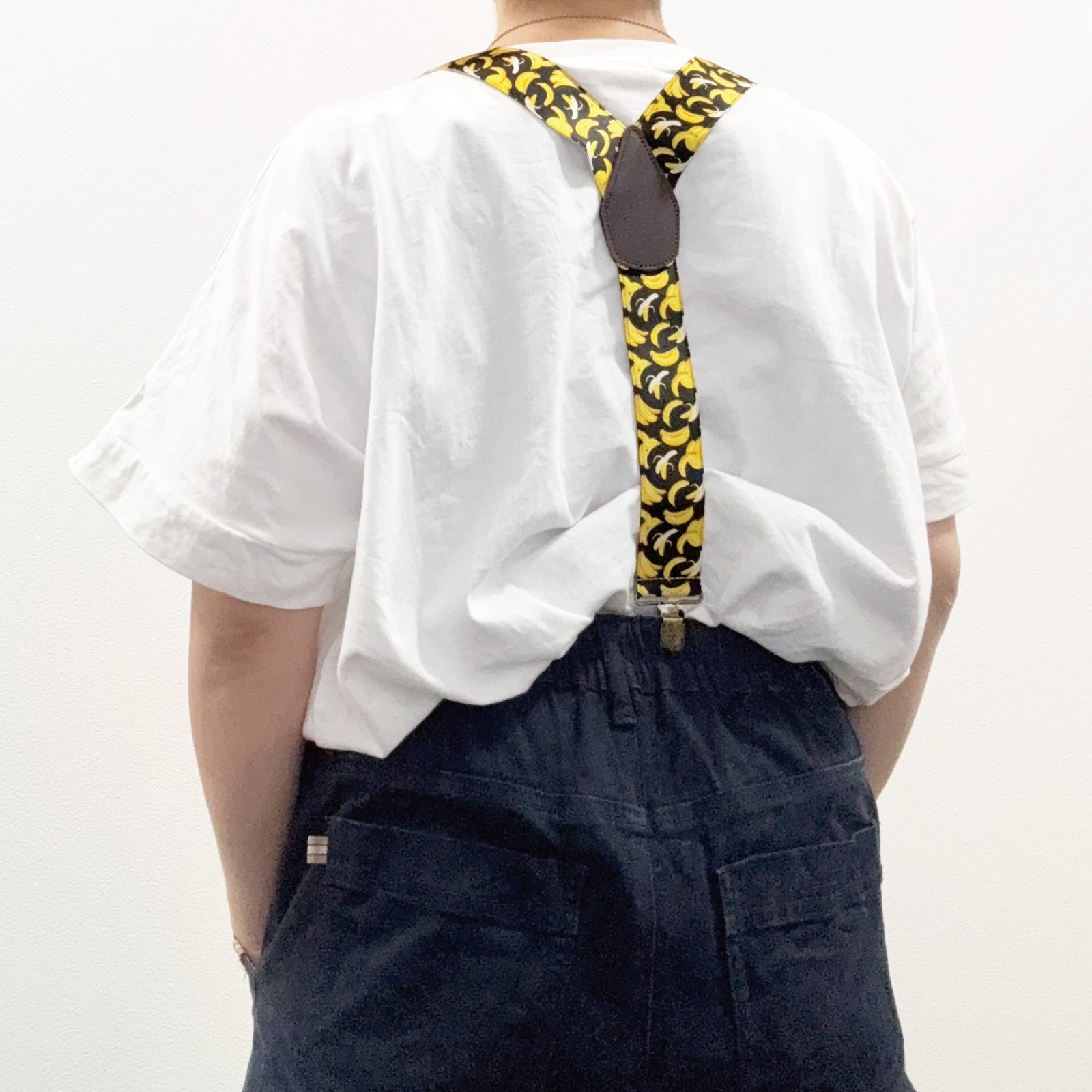 ポップでユニークなバナナ柄が目を引くサスペンダーは、カジュアルファッションはもちろん、イベントやパーティーのワンポイントアイテムとしても活躍します。