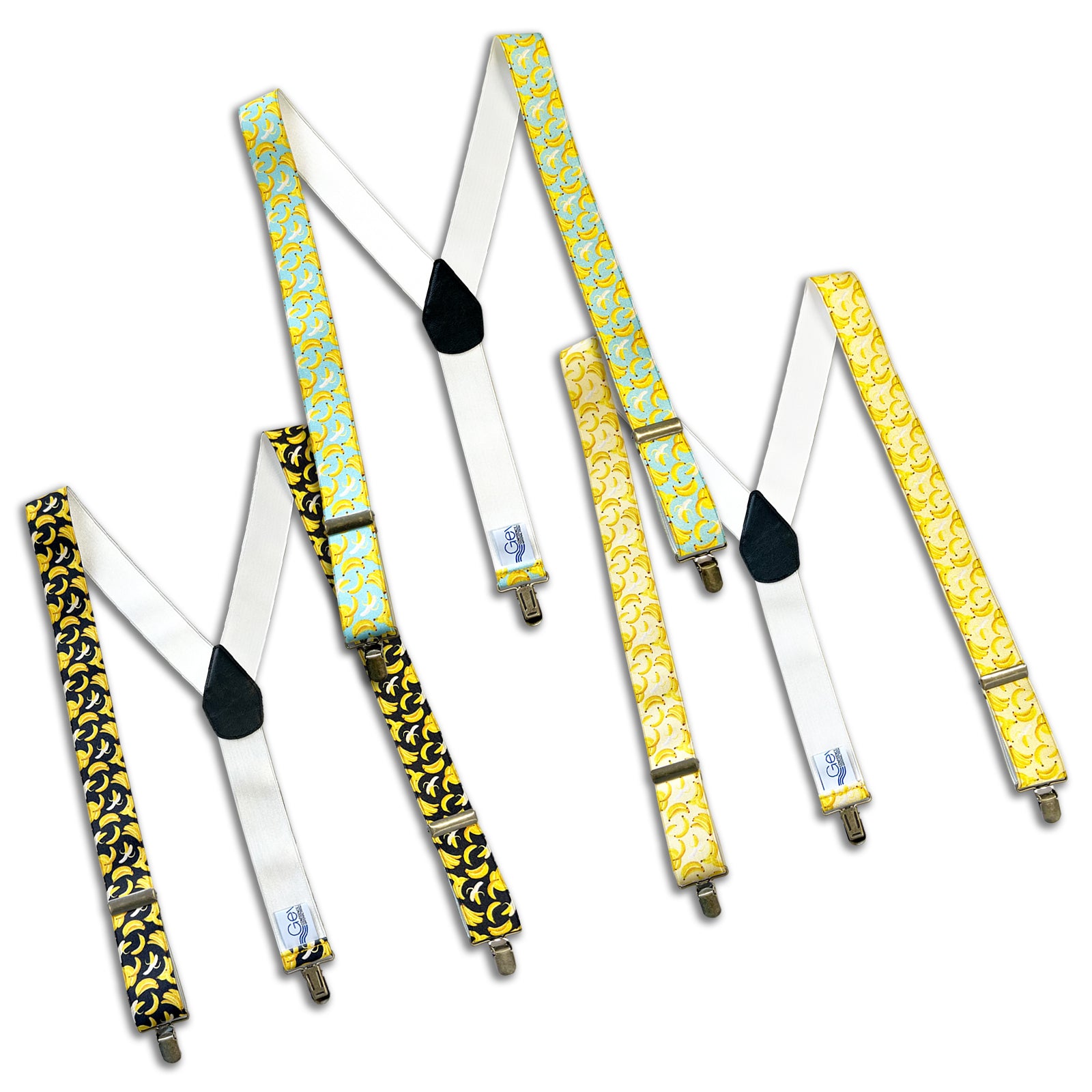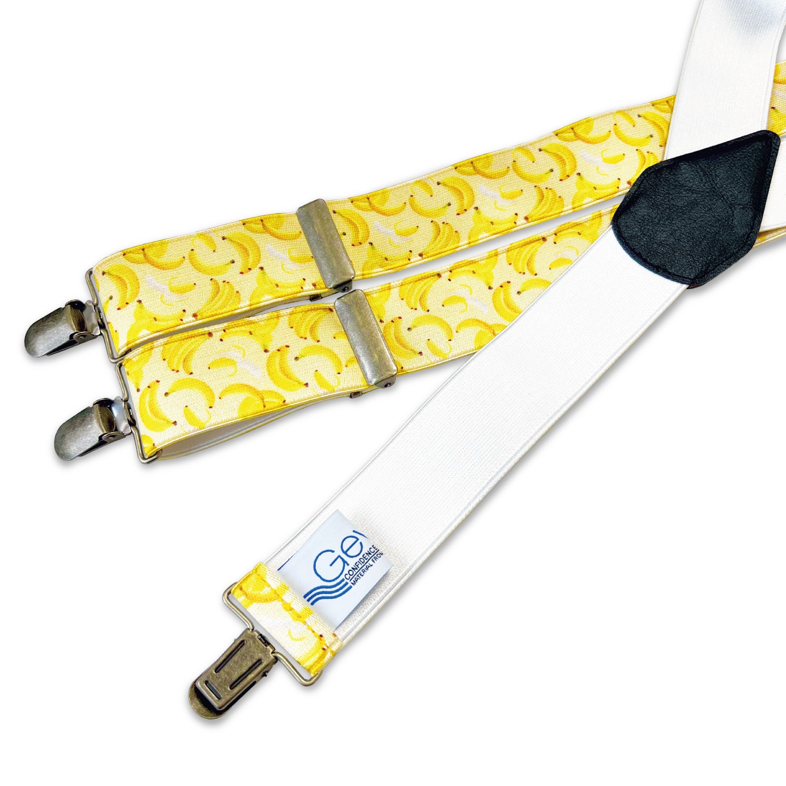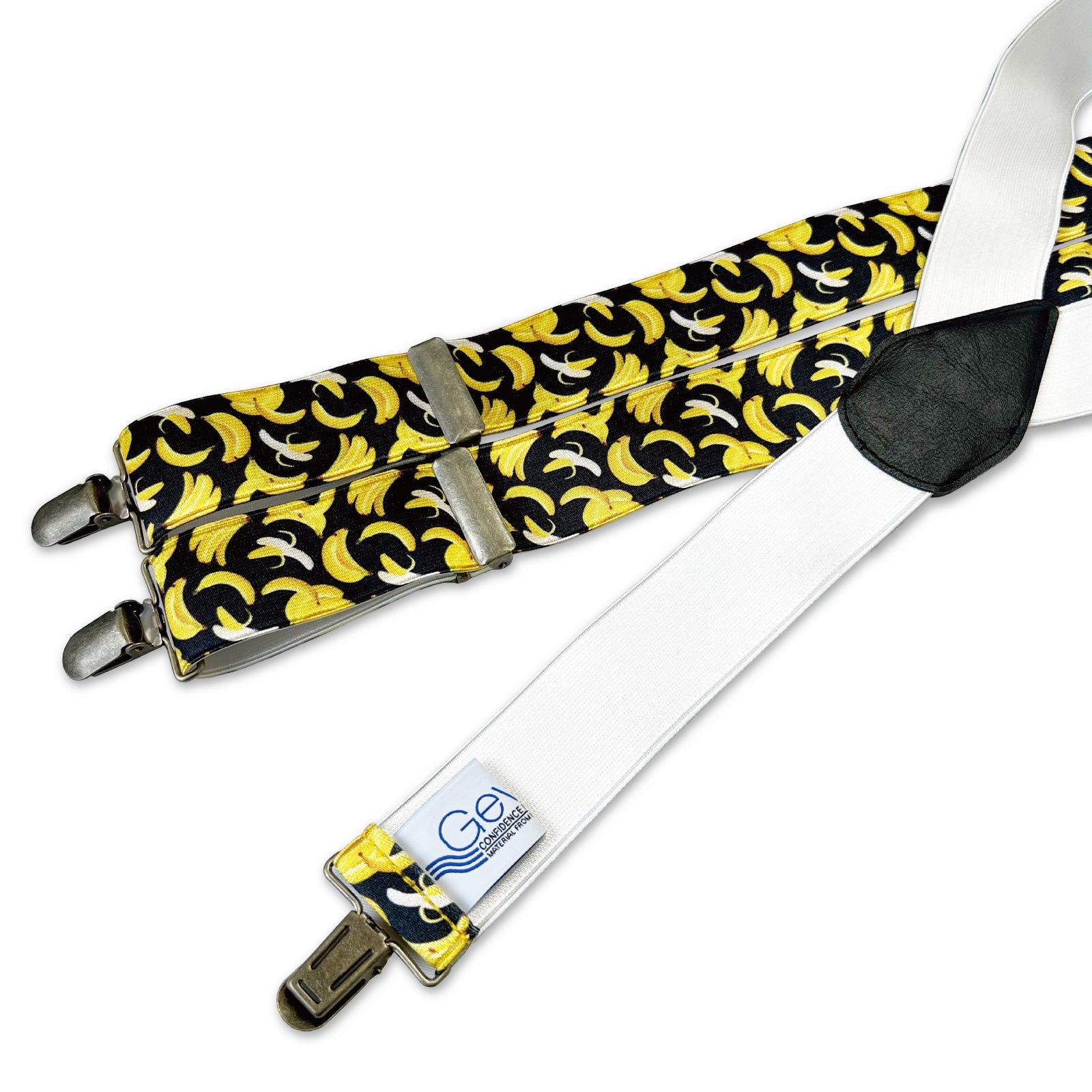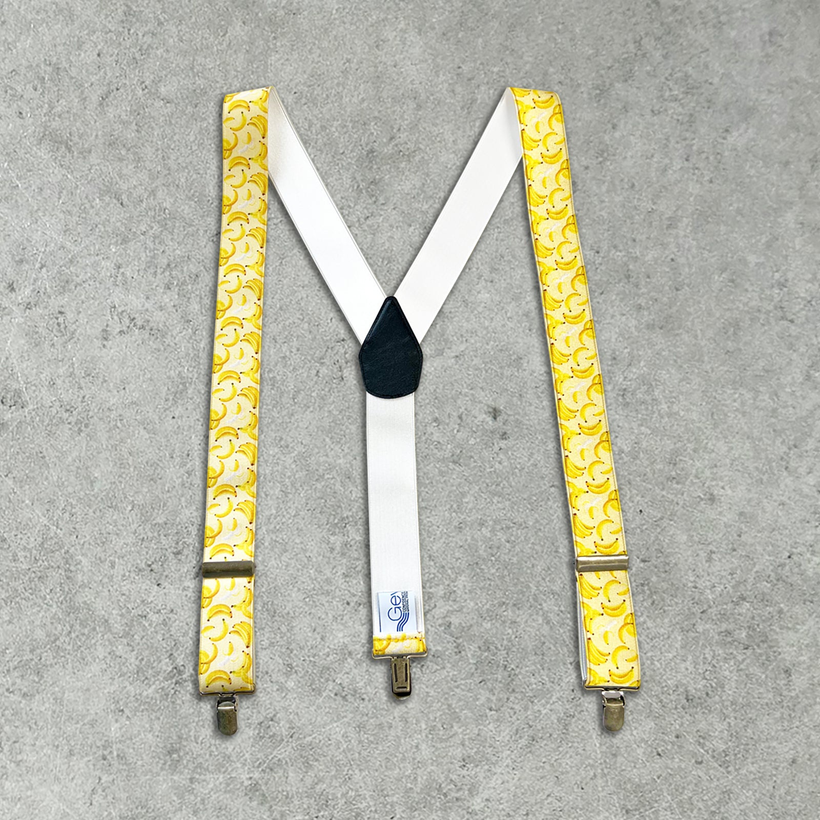 ポップでユニークなバナナ柄が目を引くサスペンダーは、カジュアルファッションはもちろん、イベントやパーティーのワンポイントアイテムとしても活躍します。